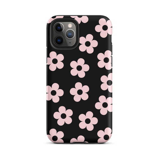 Black & Pink Retro Flowers iPhone Case