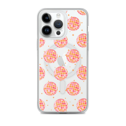 Pink & Orange Disco Balls MagSafe Clear iPhone Case