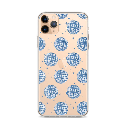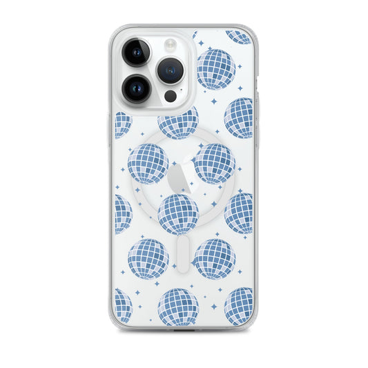 Dark Blue Disco Balls MagSafe Clear iPhone Case