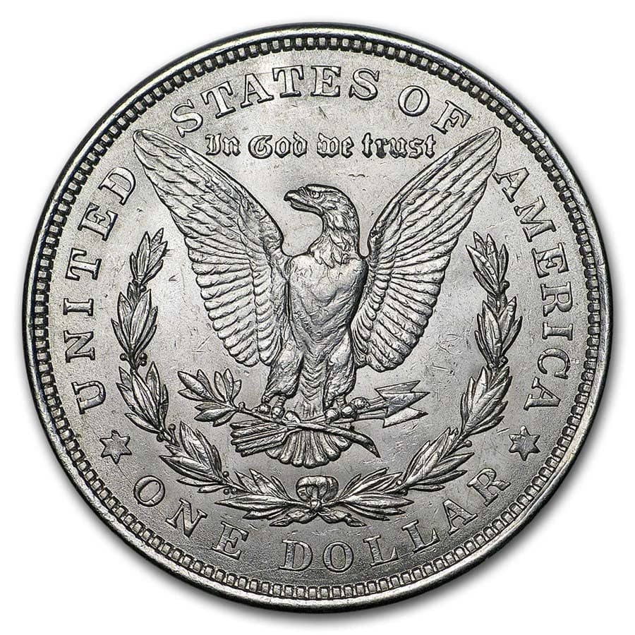The image of the eagle was also updated for the Morgan Dollar, showing a proportionally correct eagle with beautifully designed feathers. He carries an olive branch, showing America's desire for peace, and is perched atop a bundle of arrows, signifying America's readiness to defend her borders against attack.