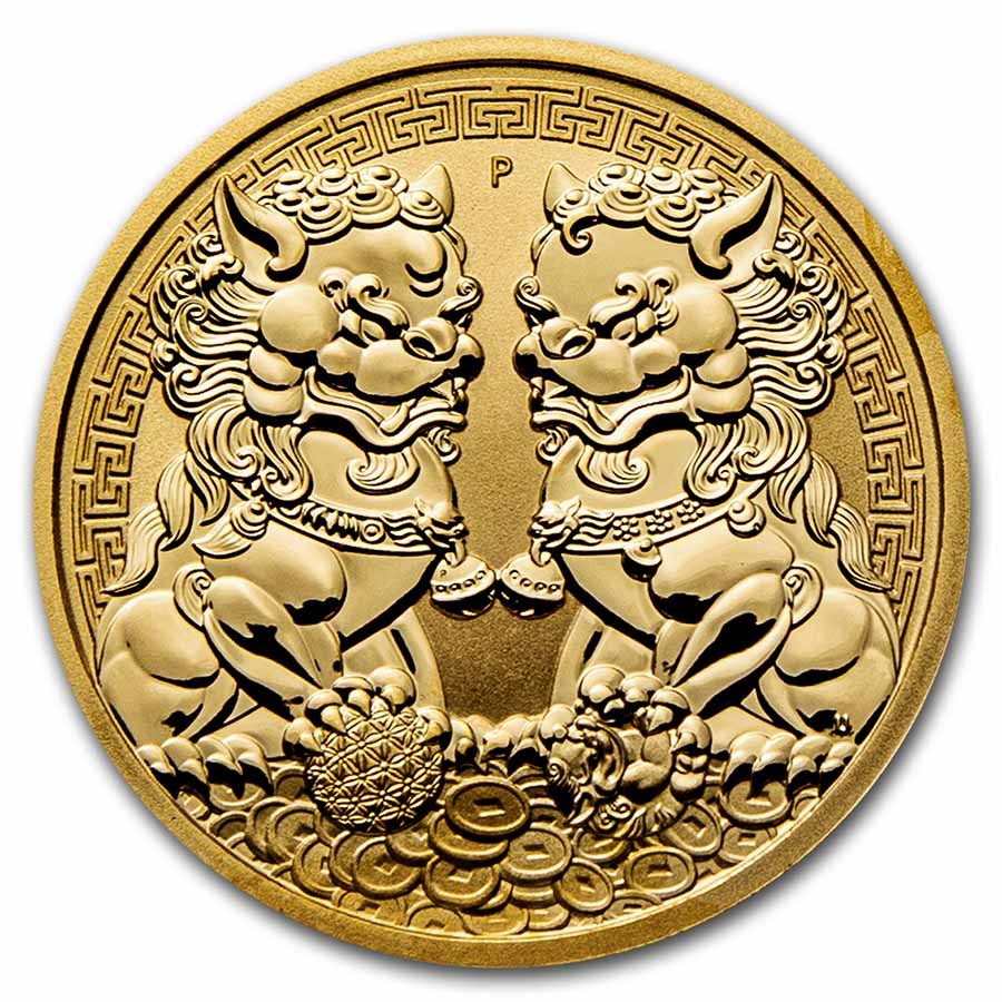 - Reverse: Features a Pixiu pair sitting upon a mound of ancient Chinese coins. One grasps a ball while the other grasps a Pixiu cub. The design also includes a stylized patters and The Perth Mint's traditional "P" mint mark.