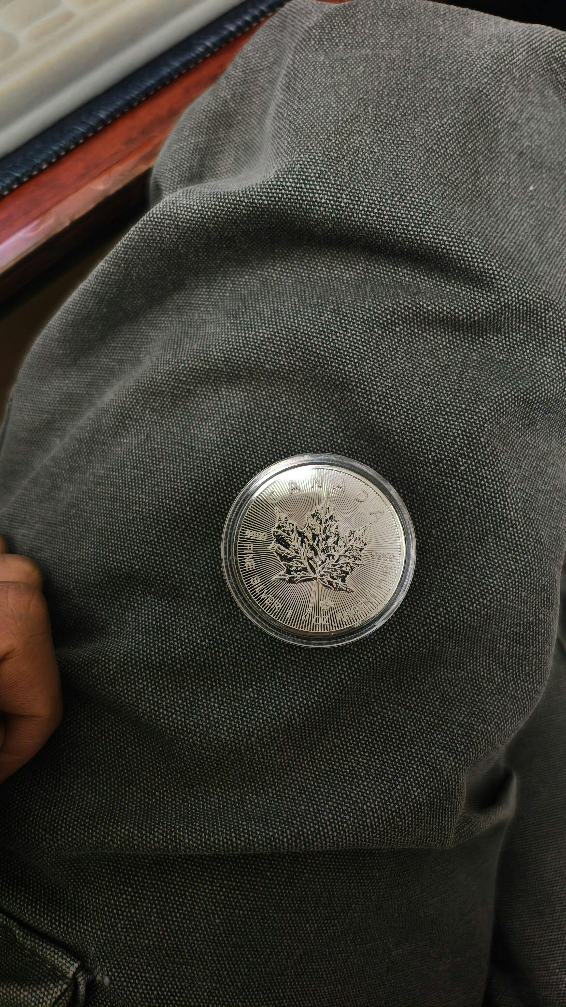 - Reverse: Features a large maple leaf with the coin's weight and purity. A new micro-engraved maple leaf privy mark shows a “25” when viewed under magnification.