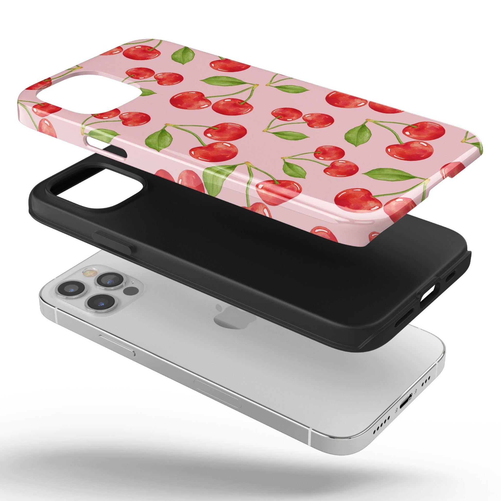 Sweeten up your phone with the Cherry Rain iPhone Case! Featuring a classic cherry print on a pink background, this case is a must-have for those who love a sweet and stylish look.