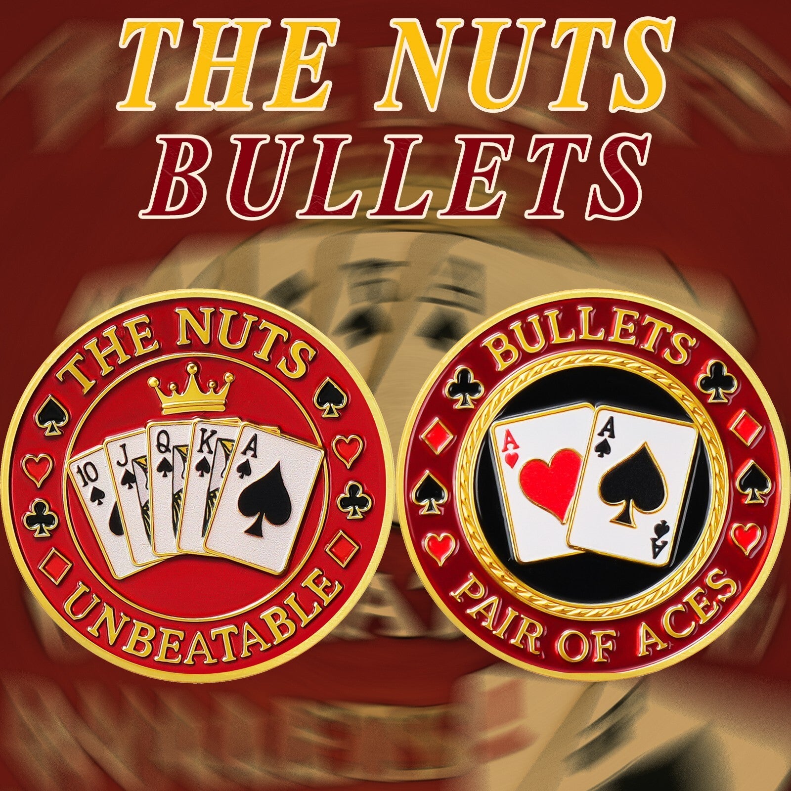 "The Nuts Unbeatable" and "Bullets Pair of Aces" Poker Coin Casino Chips – Unique Collector's Item Challenge Coin